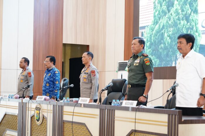 Lampung – Pangdam XXI/Radin Inten Mayjen TNI Kristomei Sianturi, S.Sos.,M.Si.(Han), menghadiri Rapat Koordinasi Lintas Sektoral (Rakor) dalam rangka kesiapan pengamanan Natal 2025 dan Tahun Baru 2026 di Provinsi Lampung yang dipimpin oleh Kapolda Lampung Irjen Pol Helfi Assegaf, S.I.K., M.H., bertempat di Gedung GSG Presisi Polda Lampung Jl. Terusan Ryacudu Jati Agung Lampung Selatan, Rabu (17/12/2025).